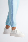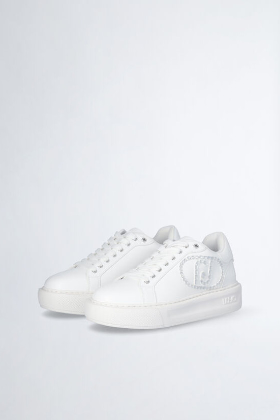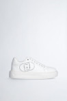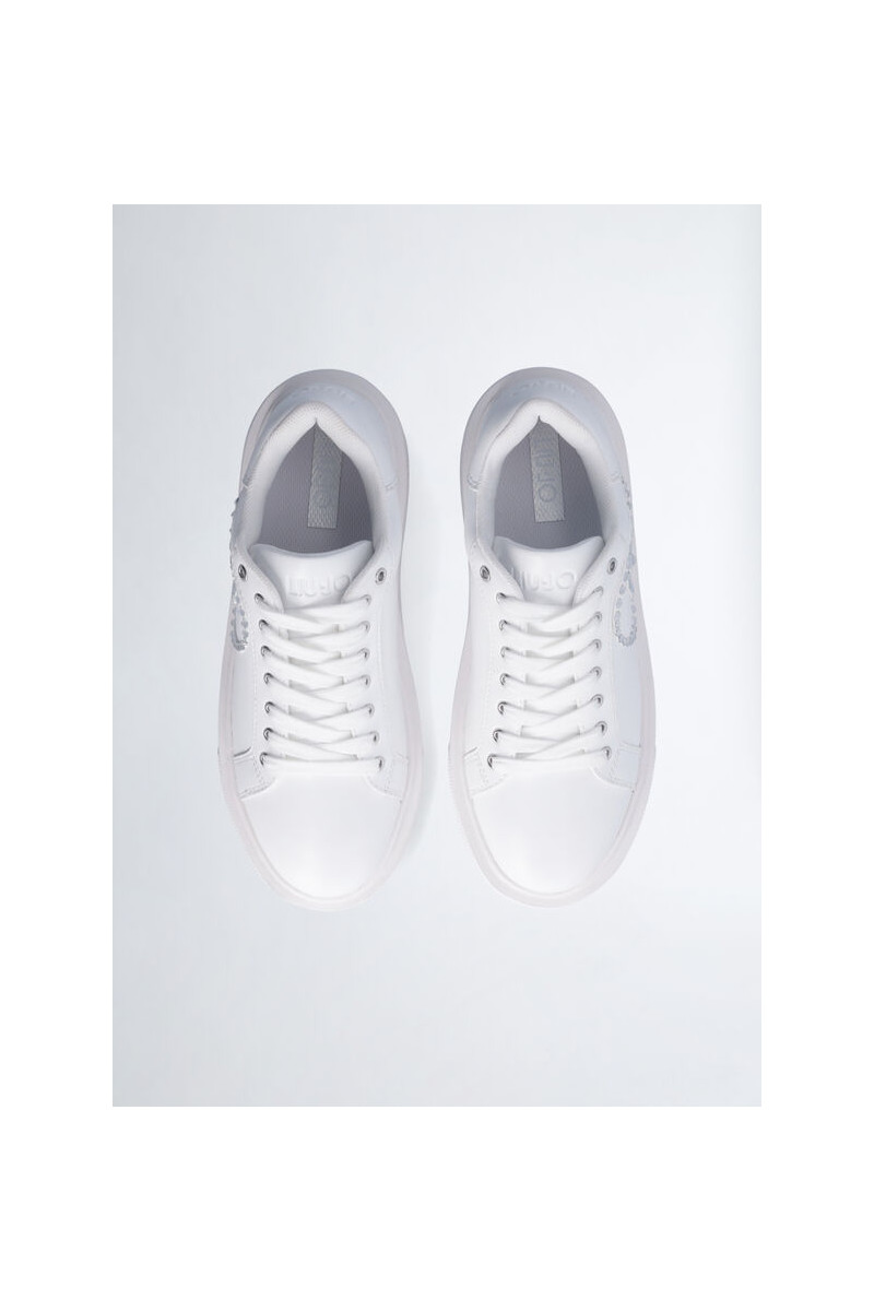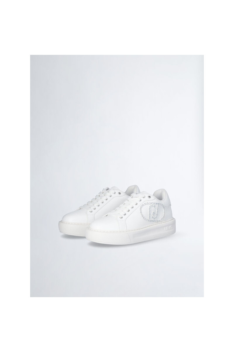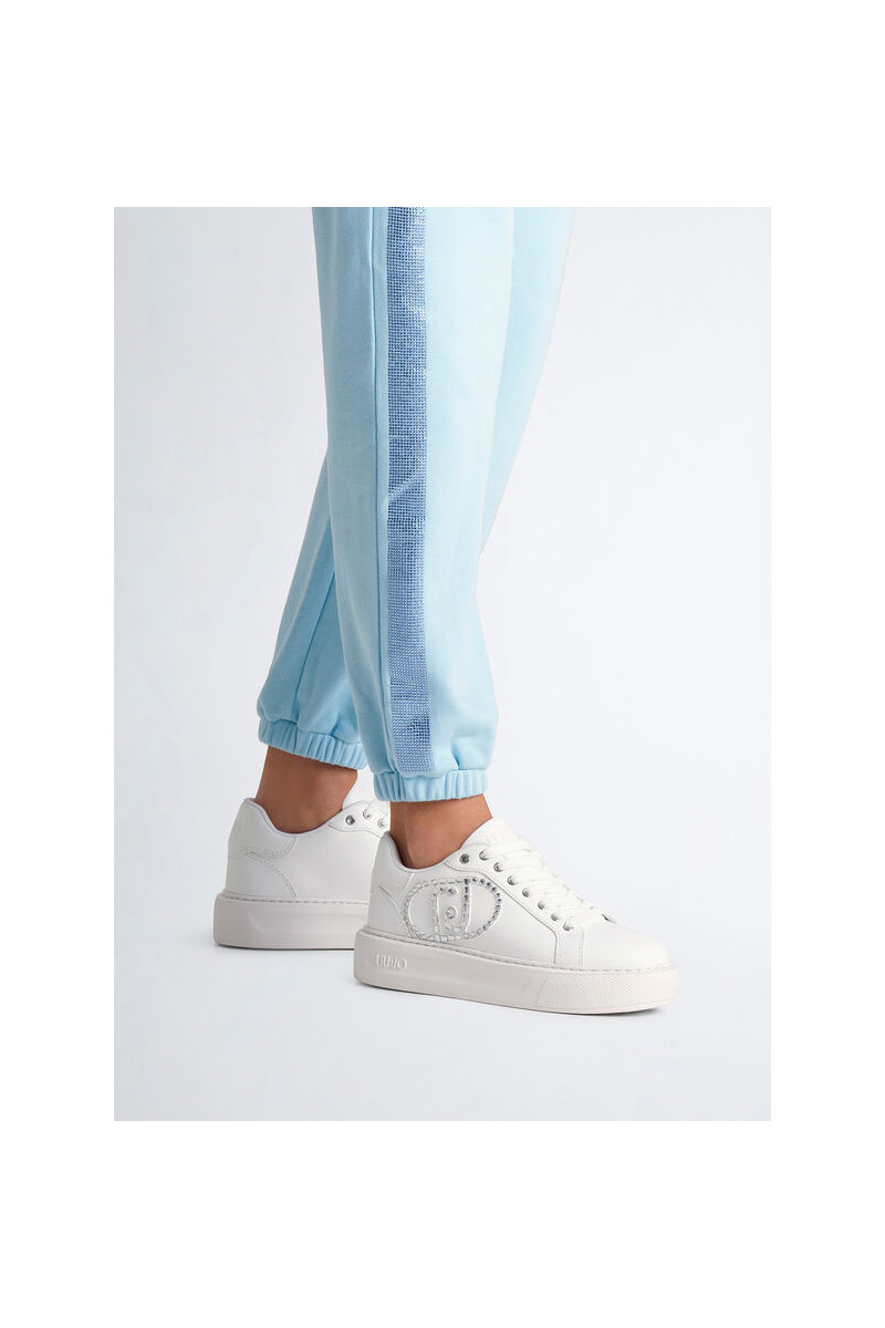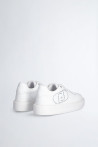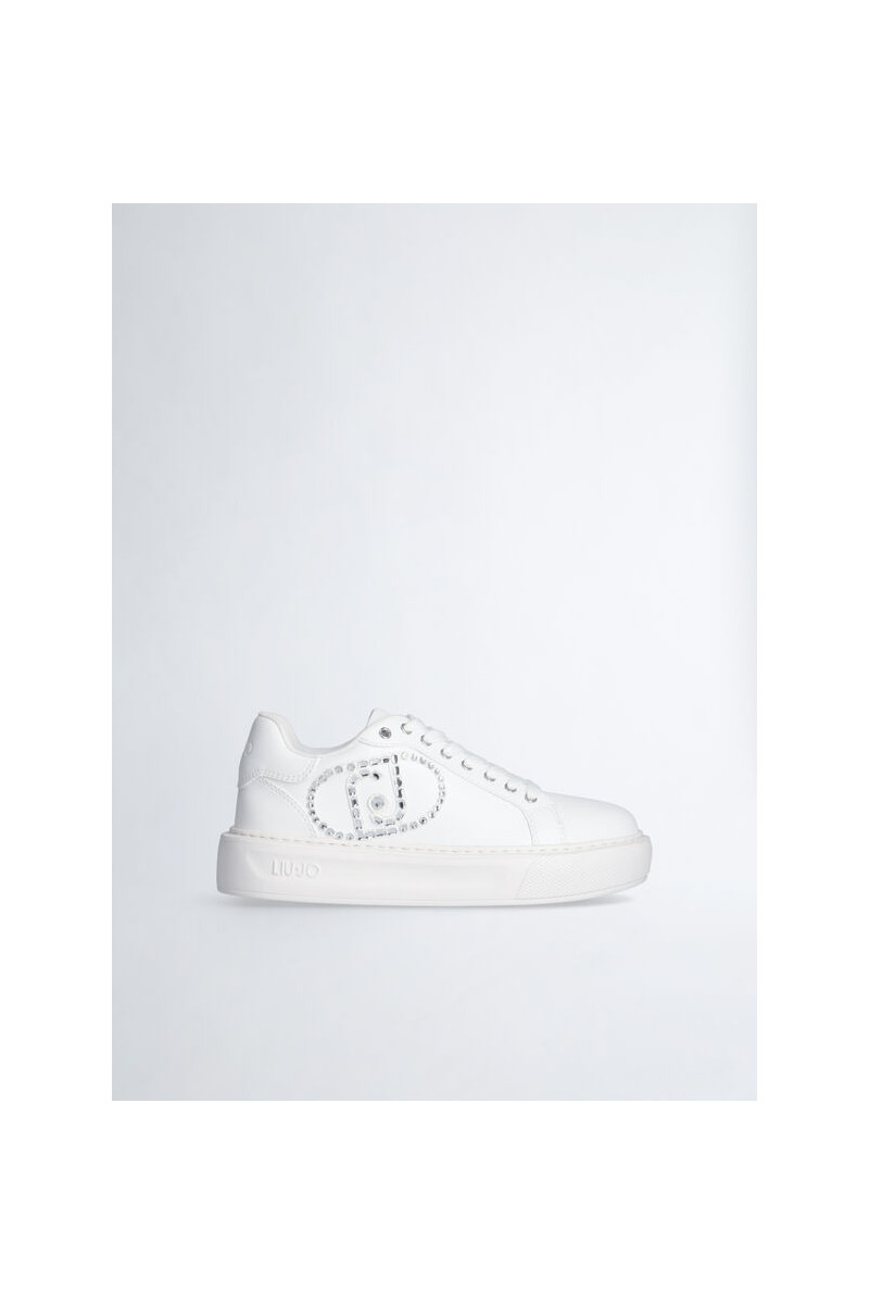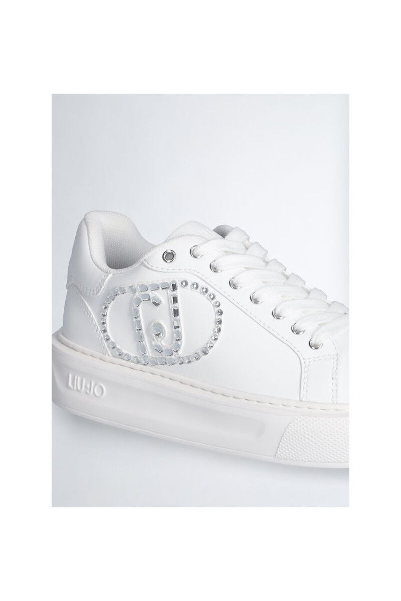 Tênis branco feminino Maxi-logotipo com strass Ilhós de metal com logotipo Cadarços planos Sola em relevo com logo em relevo Altura da sola: 4 cm