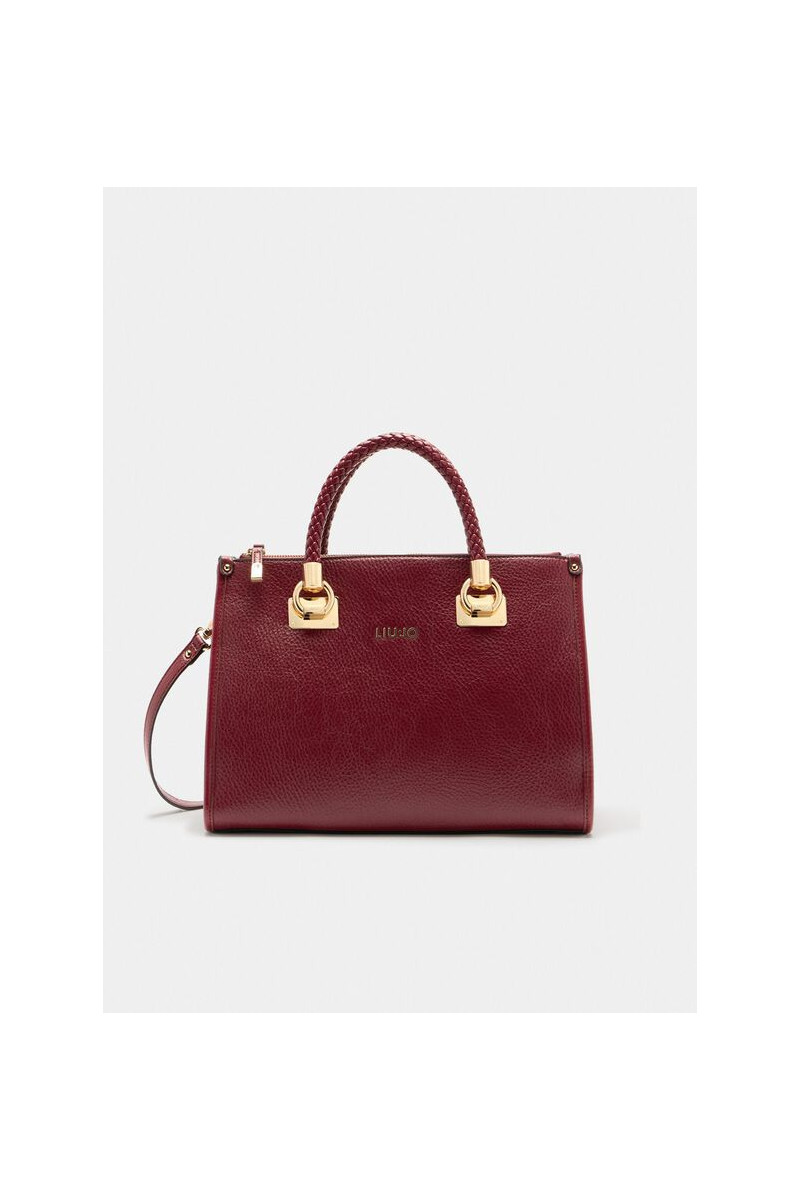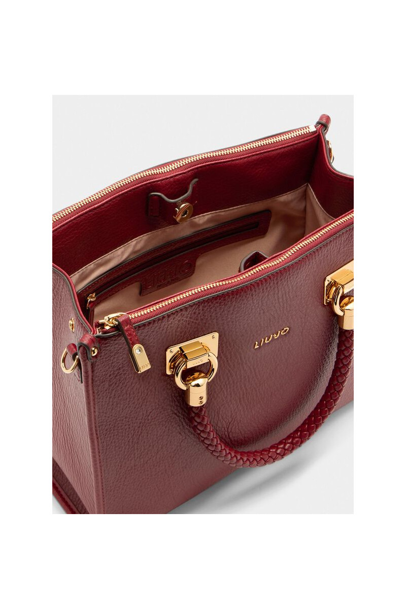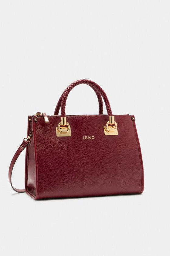Dimensões: 34 x 15 x 25 cm Sacola de compras marrom Estampa efeito garrafa Logotipo de metal na frente Alças trançadas confortáveis Alça de ombro ajustável e removível Dois compartimentos com zíper Bolso interno com zíper Etiqueta de logotipo interno Pés de metal na parte inferior Fechamento com botão magnético Produto "Liu Jo Better" O acessório pode ser usado no ombro e/ou na transversal
