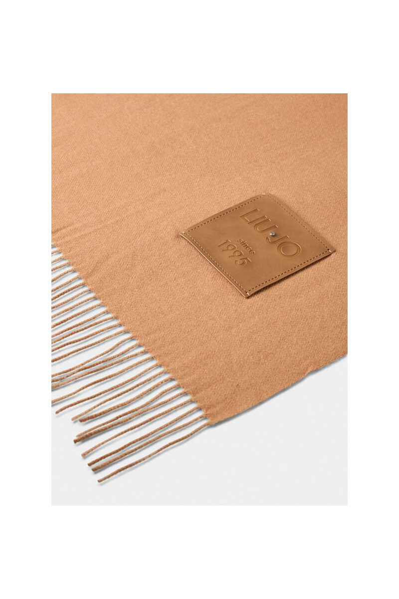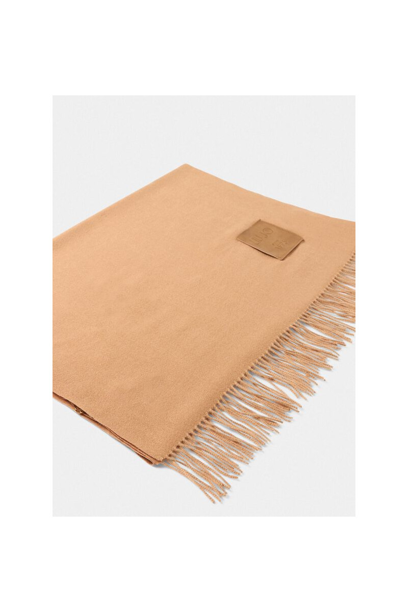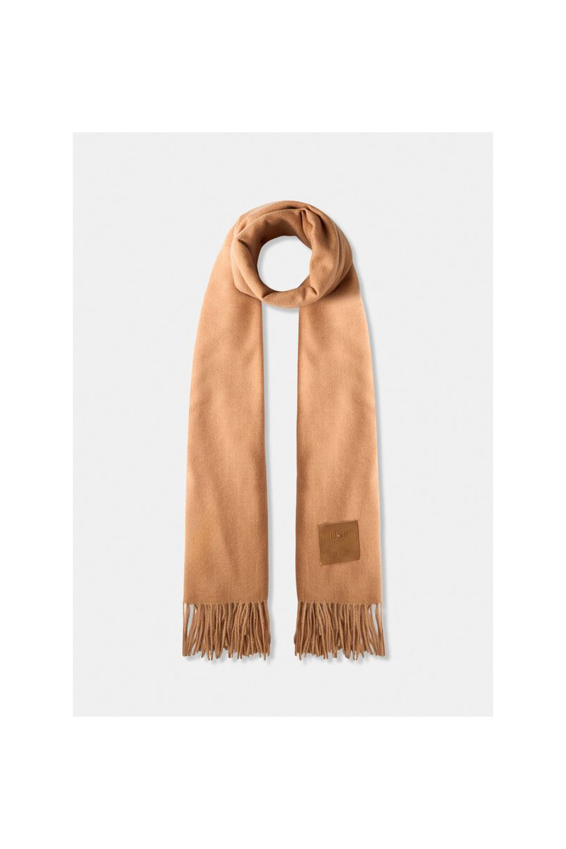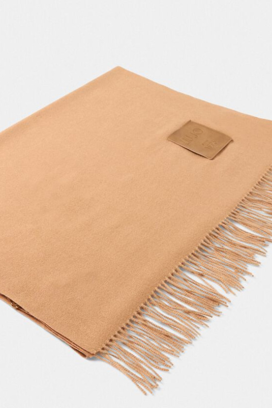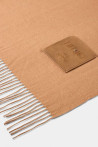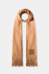 Xale marrom Feito de tecido escovado Patch de logotipo Bordas franjadas 70 x 180 cm
