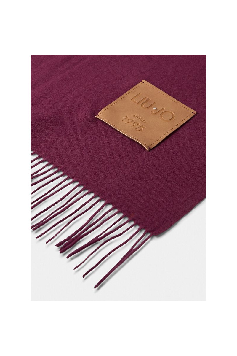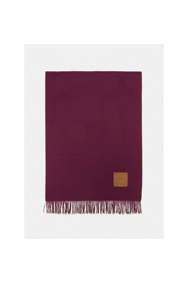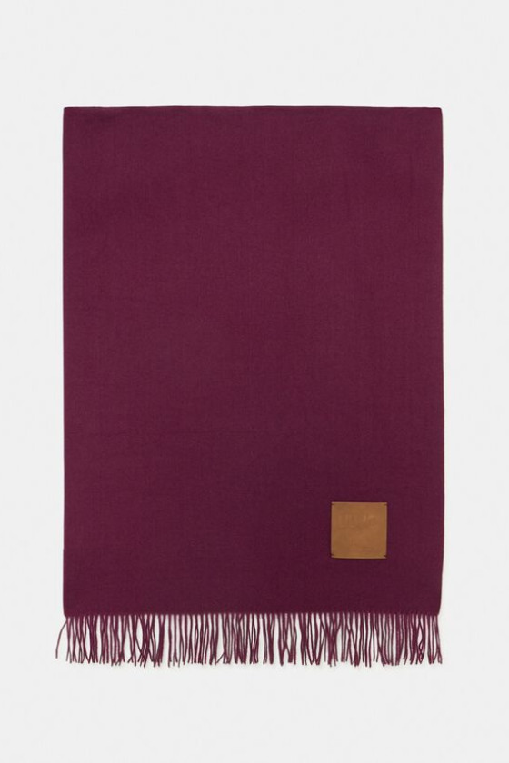 xale vermelho Feito de tecido escovado Patch de logotipo Bordas franjadas 70 x 180 cm