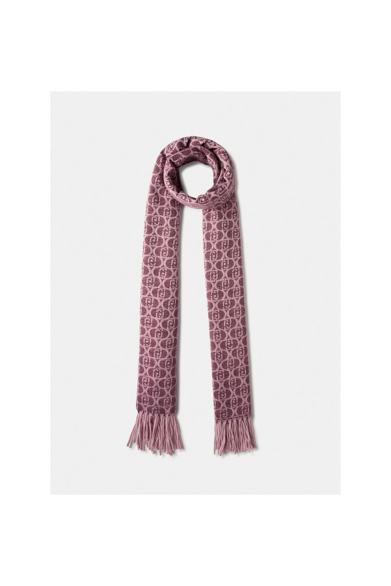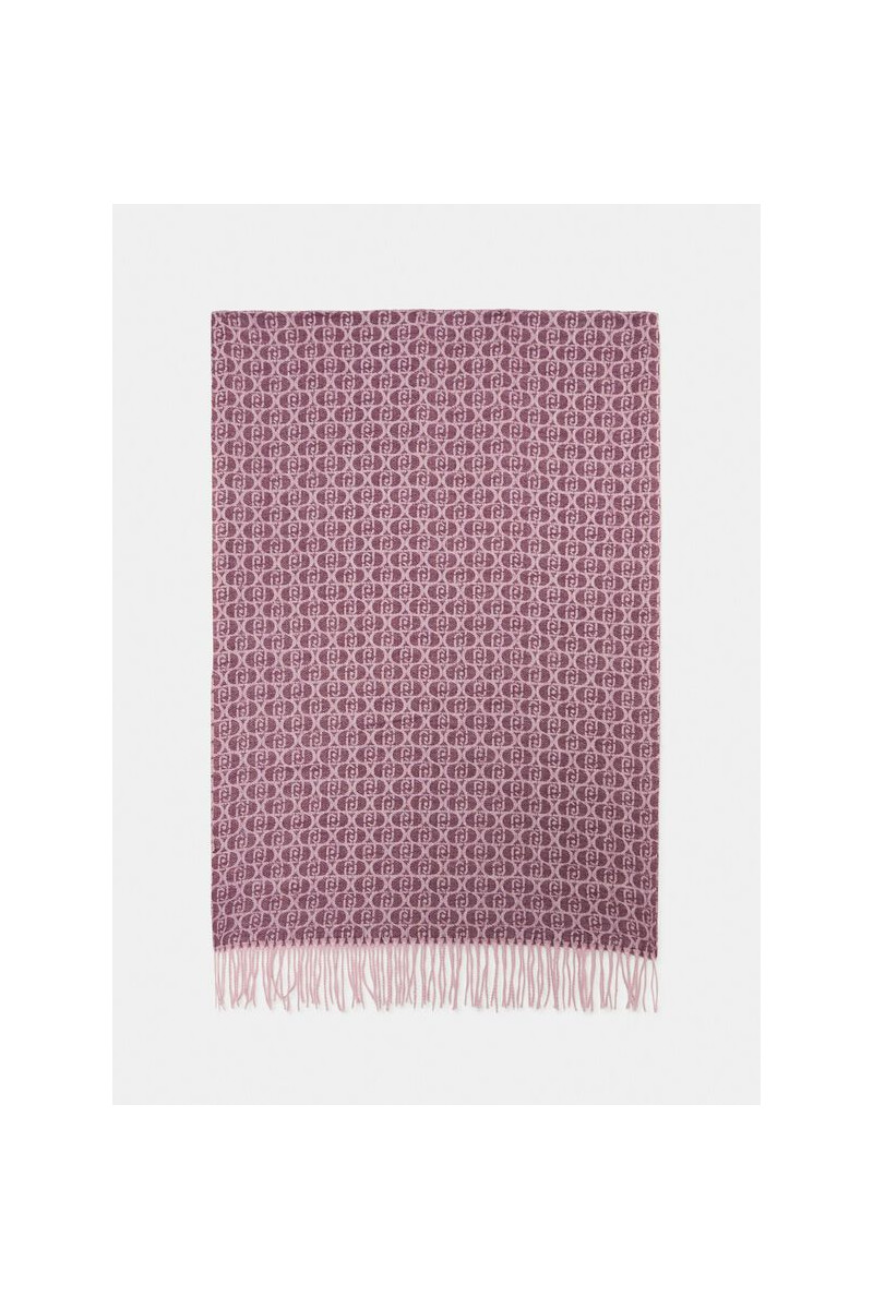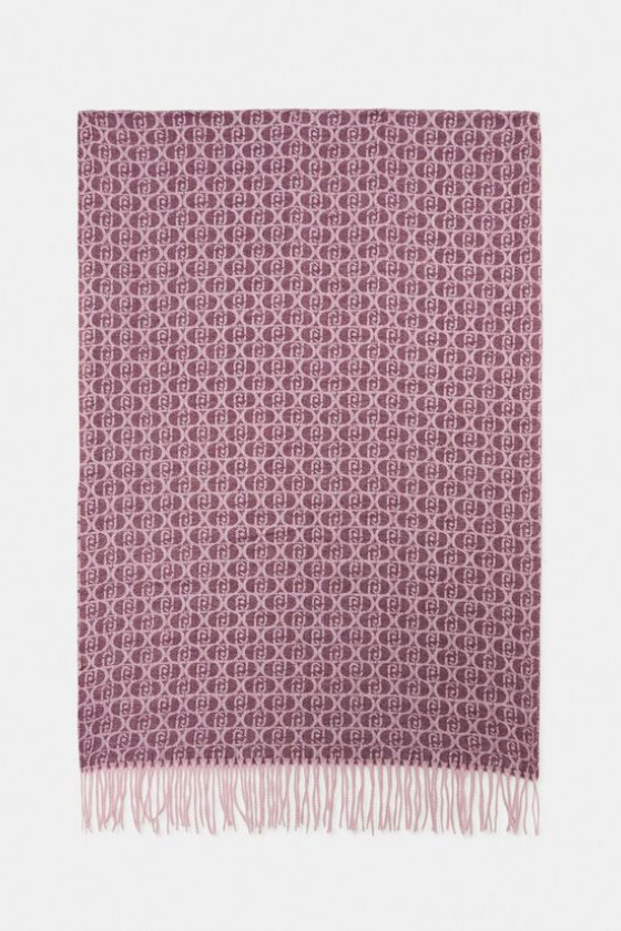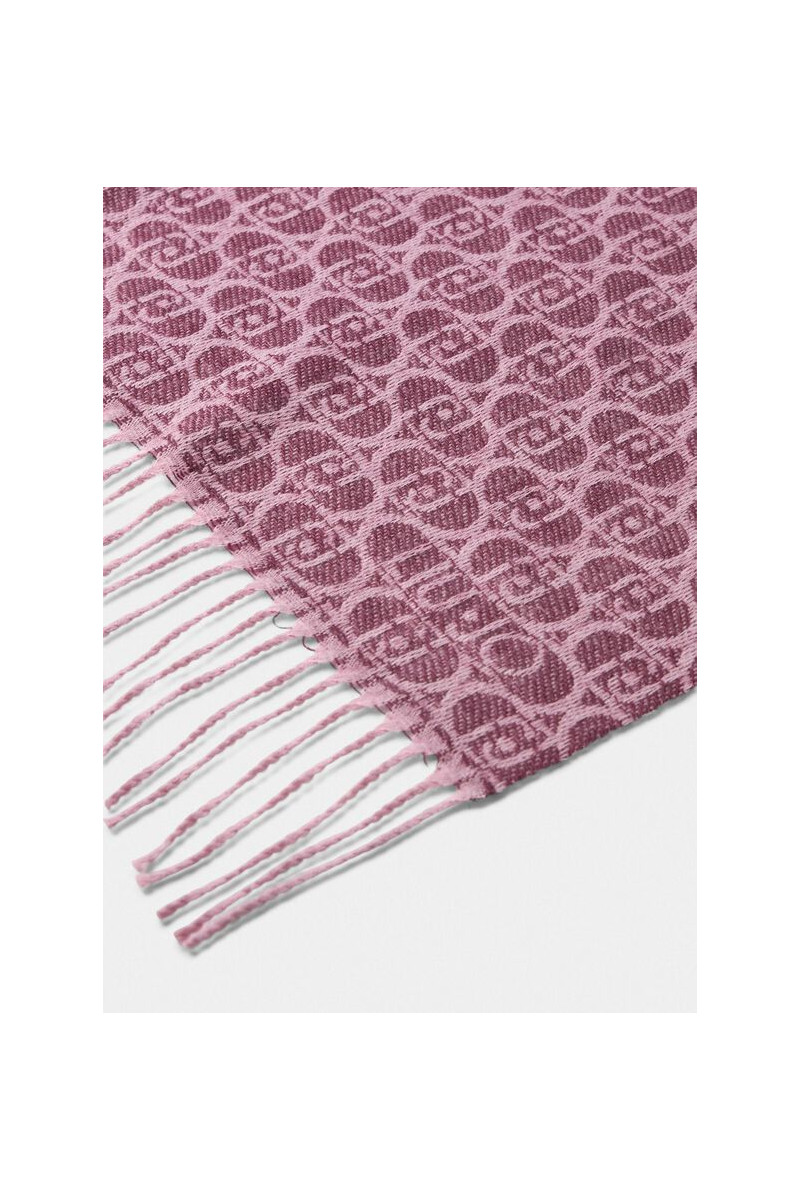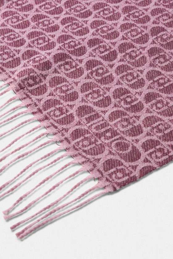 Xale COR VINHO Feito de tecido jacquard Logotipo monograma completo Bordas franjadas 65 x 180 cm